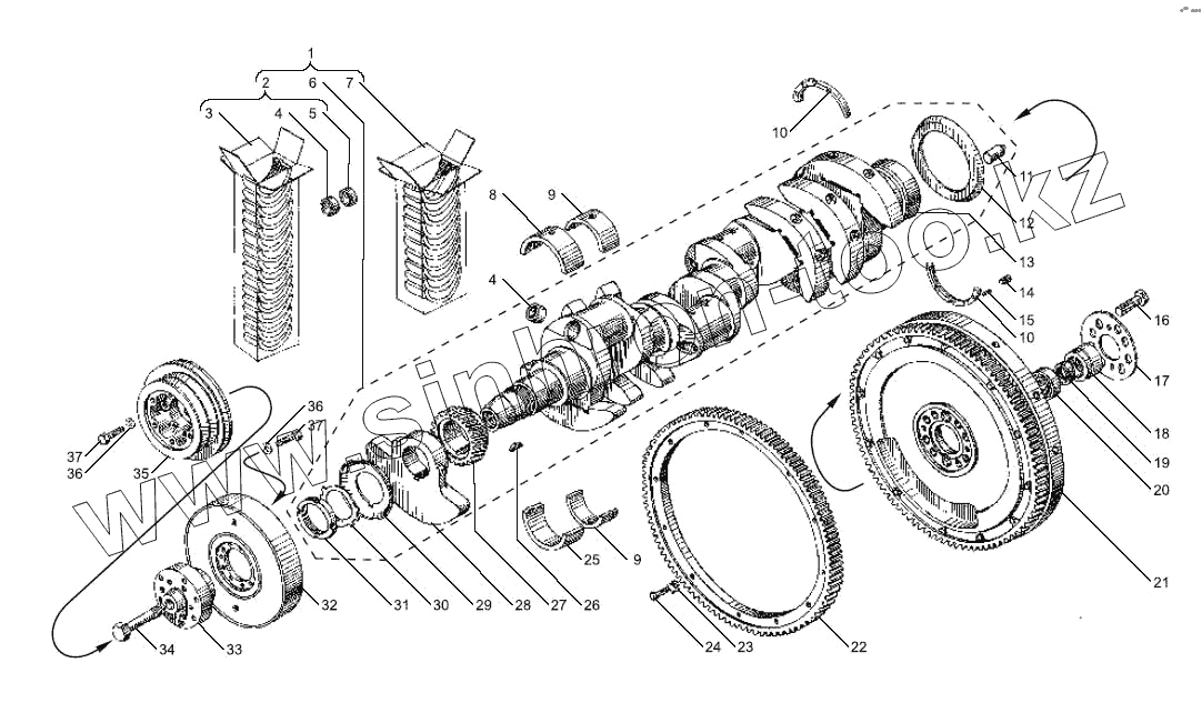 Каталог запасных частей к технике: ЯМЗ-6582.10 (Евро 3). Вал коленчатый и маховик