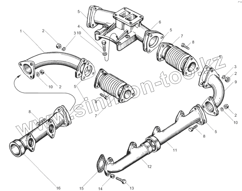 Каталог запасных частей к технике: ЯМЗ-7511.10. Коллекторы выпускные