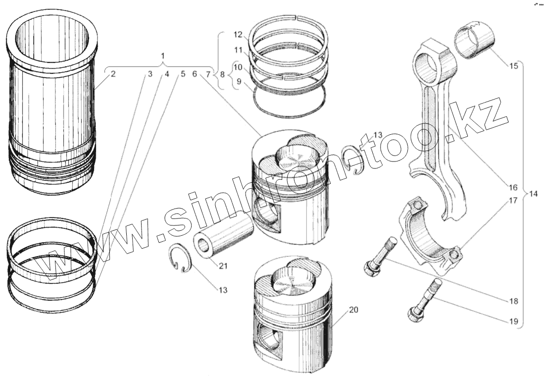 Каталог запасных частей к технике: ЯМЗ-7511.10. Поршень и шатун