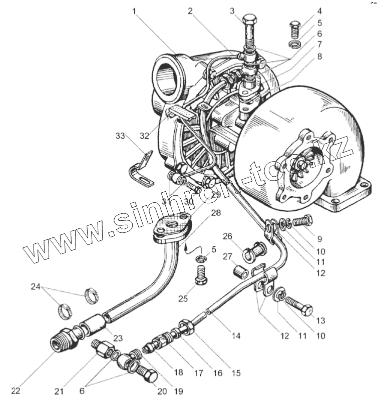 Каталог запасных частей к технике: ЯМЗ-7511.10. Трубки подвода и слива масла турбокомпрессора