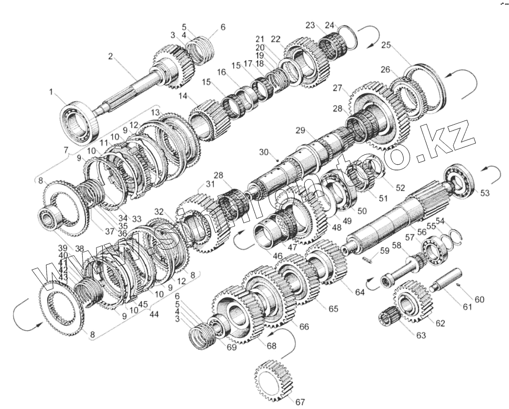 Каталог запасных частей к технике: ЯМЗ-7511.10. Валы и шестерни коробки передач