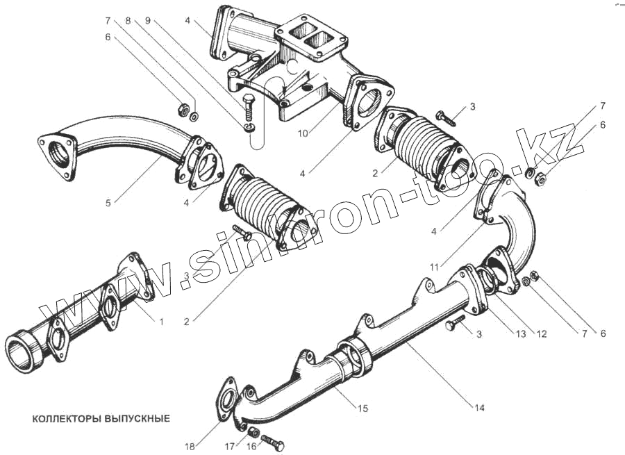 Каталог запасных частей к технике: ЯМЗ-7511. Коллекторы выпускные