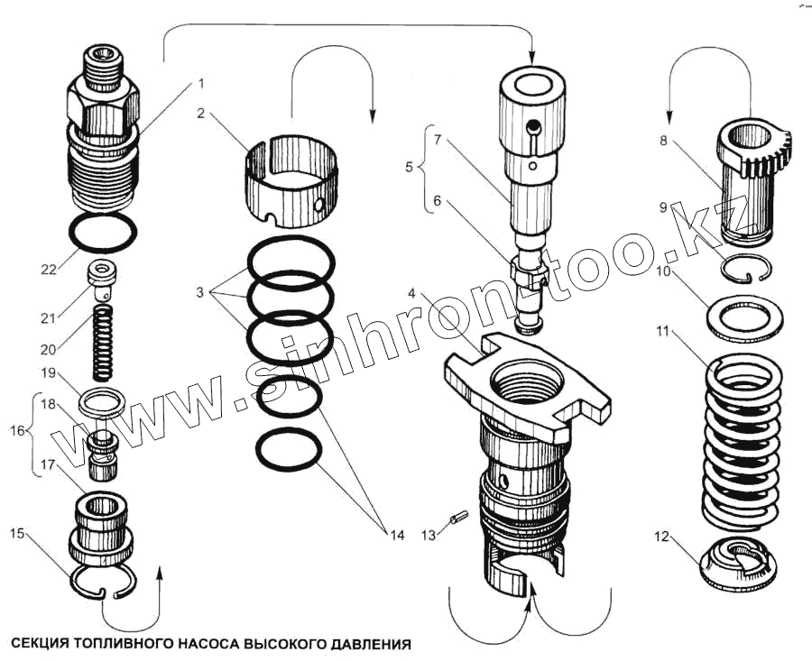 Каталог запасных частей к технике: ЯМЗ-7511. Секция топливного насоса