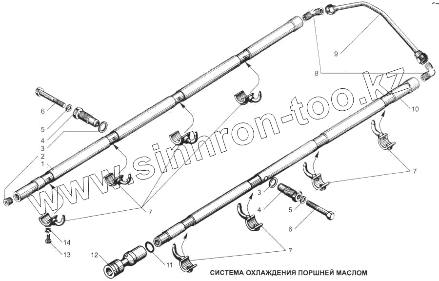 Каталог запасных частей к технике: ЯМЗ-7511. Система охлаждения поршней маслом
