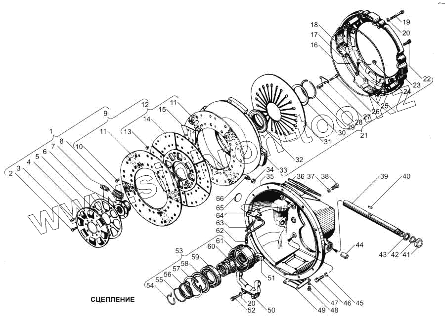 Каталог запасных частей к технике: ЯМЗ-7511. Сцепление