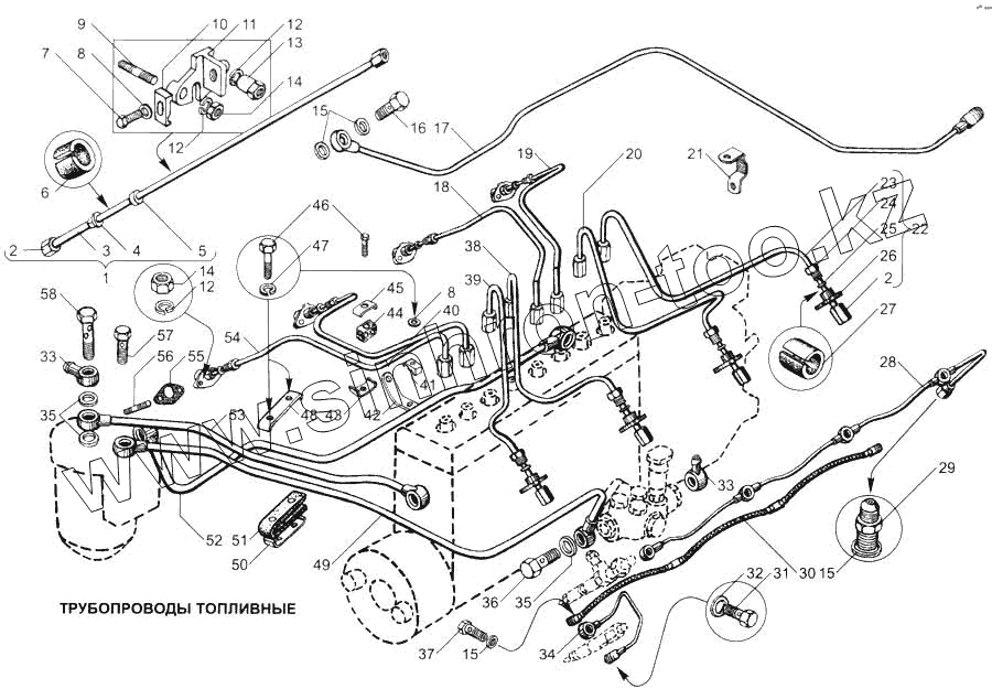 Каталог запасных частей к технике: ЯМЗ-7511. Трубопроводы топливные