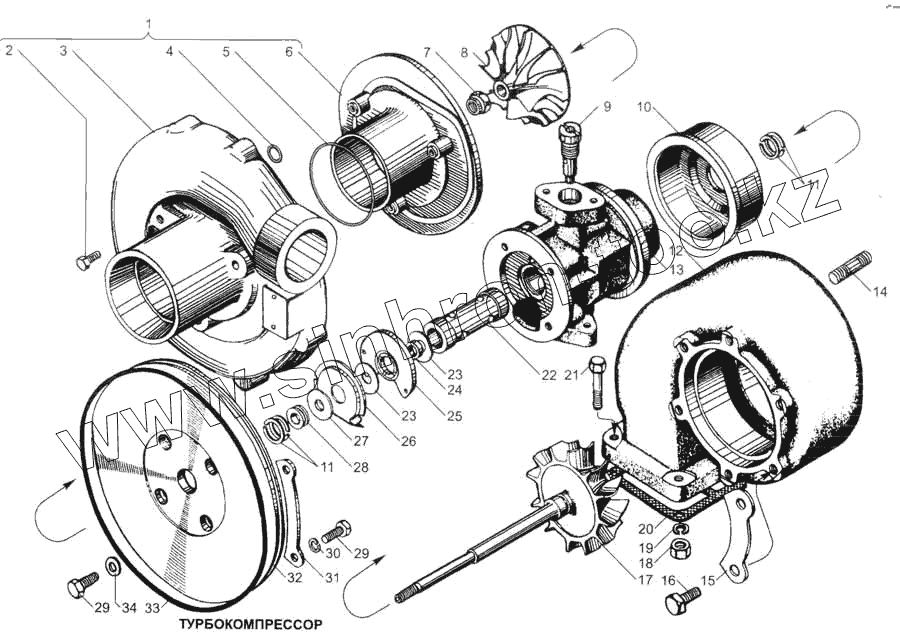 Каталог запасных частей к технике: ЯМЗ-7511. Турбокомпрессор