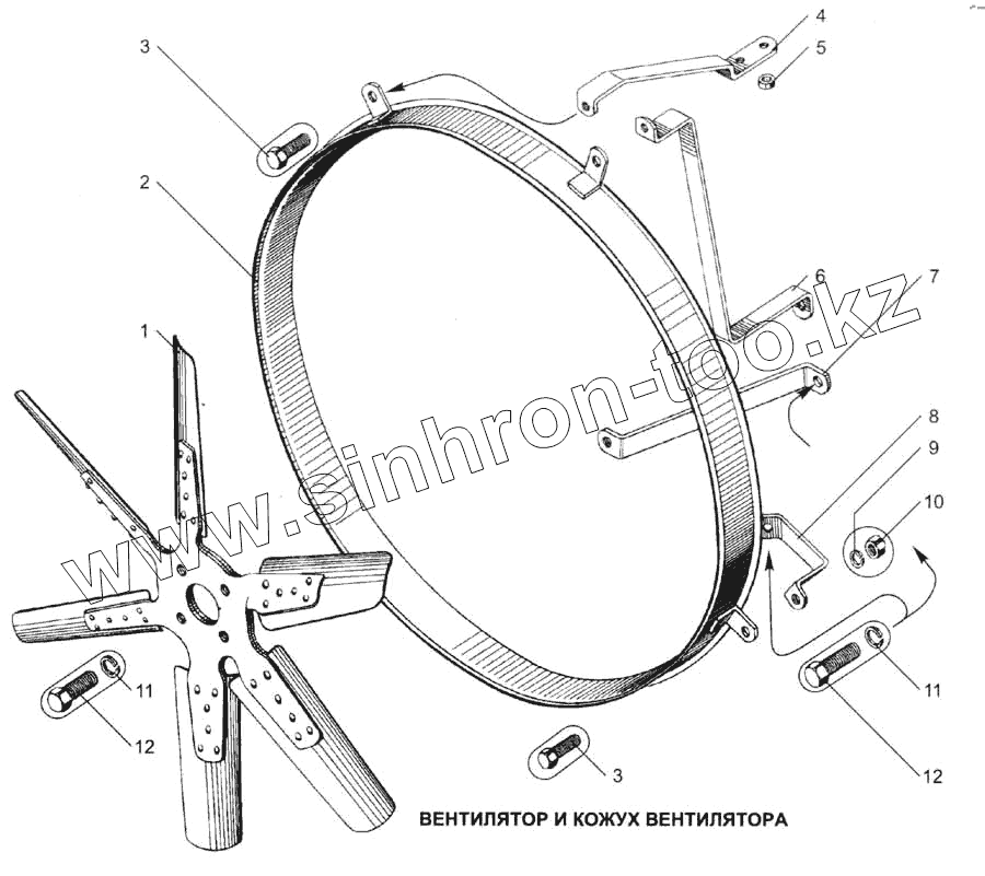 Каталог запасных частей к технике: ЯМЗ-7511. Вентилятор и кожух вентилятора