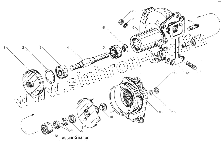 Каталог запасных частей к технике: ЯМЗ-7511. Водяной насос