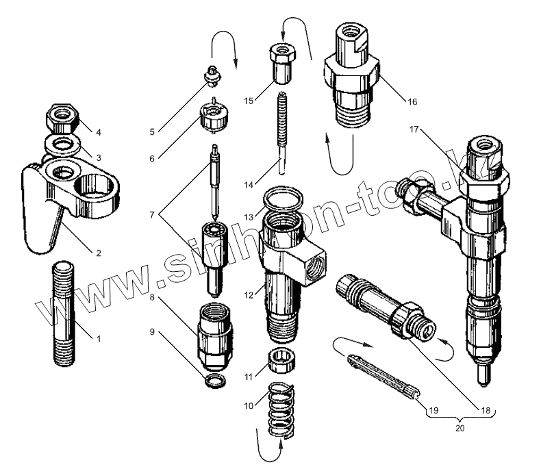 Каталог запасных частей к технике: ЯМЗ-7511 (2005). Форсунка двигателей с общими головками цилиндров