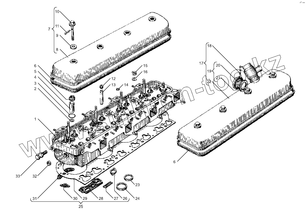 Каталог запасных частей к технике: ЯМЗ-7511 (2005). Общая головка цилиндров