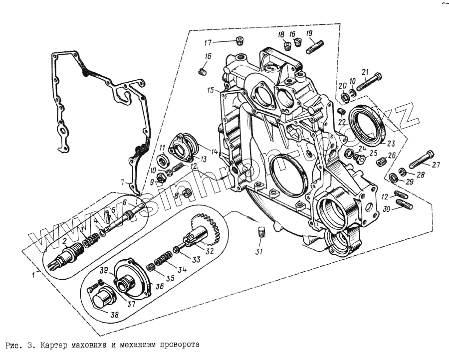 Каталог запасных частей к технике: ЯМЗ-8401.10. Картер маховика и механизм поворота