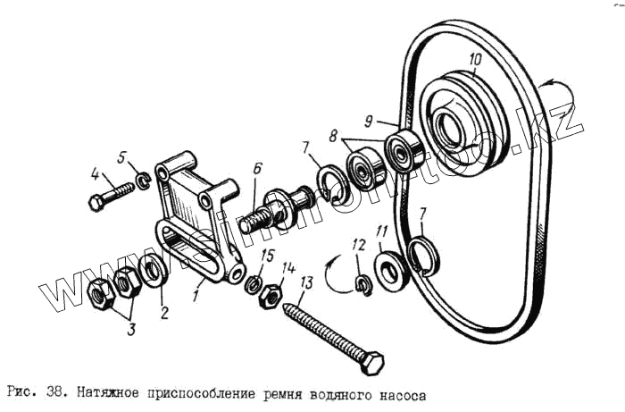 Каталог запасных частей к технике: ЯМЗ-8401.10. Натяжное приспособление ремня водяного насоса