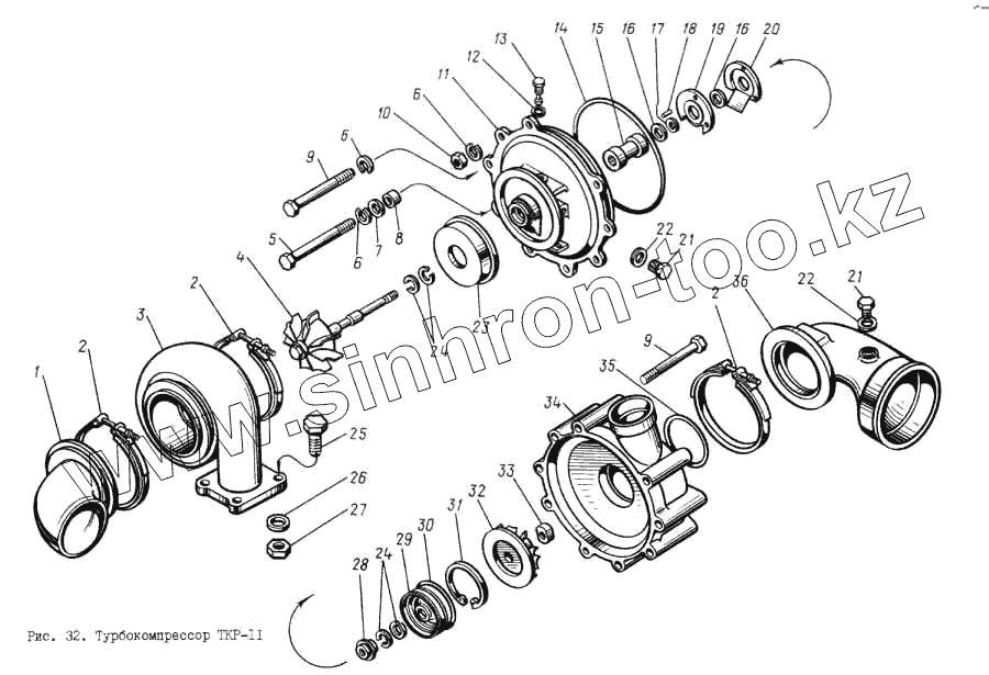 Каталог запасных частей к технике: ЯМЗ-8401.10. Турбокомпрессор ТКР-11