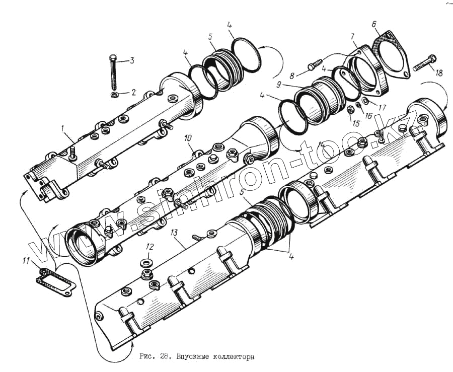 Каталог запасных частей к технике: ЯМЗ-8401.10. Впускные коллекторы