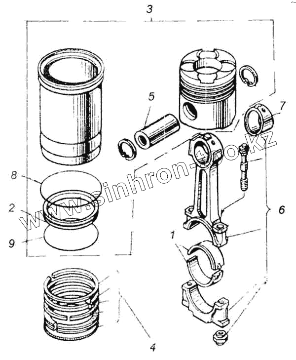 Каталог запасных частей к технике: ЯМЗ-8401. Поршень и шатун