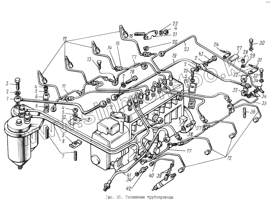 Каталог запасных частей к технике: ЯМЗ-8421.10. Топливные трубопроводы