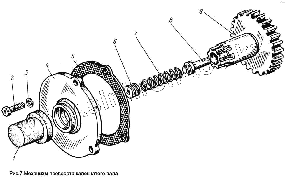 Каталог запасных частей к технике: ЯМЗ-8423.10. Механизм проворота коленчатого вала