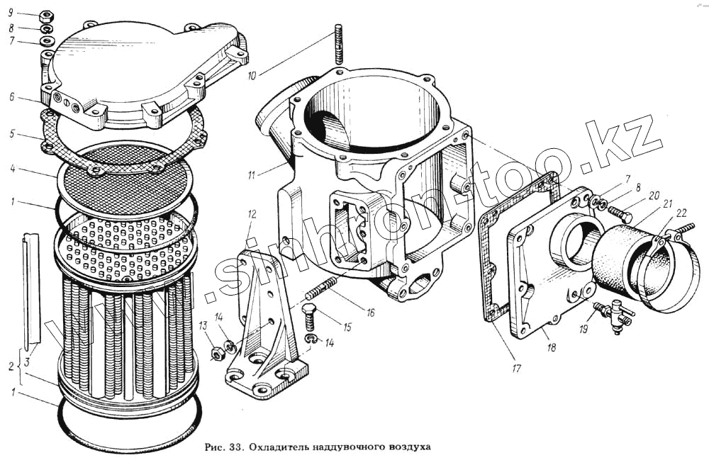 Каталог запасных частей к технике: ЯМЗ-8423.10. Охладитель наддувочного воздуха