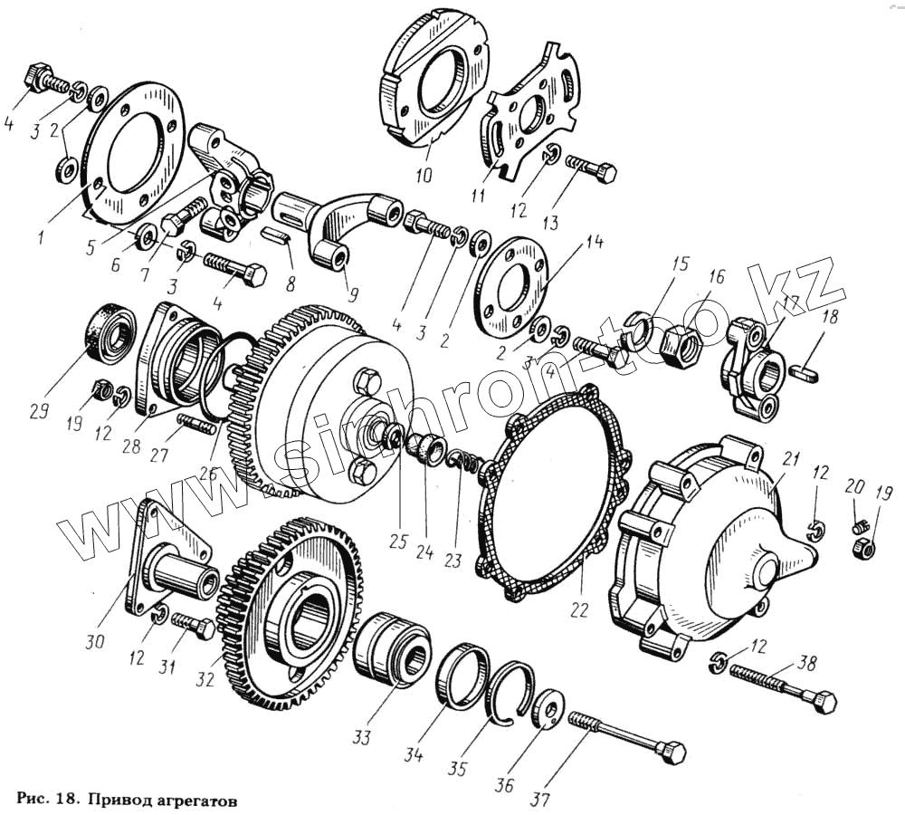 Каталог запасных частей к технике: ЯМЗ-8423.10. Привод агрегатов