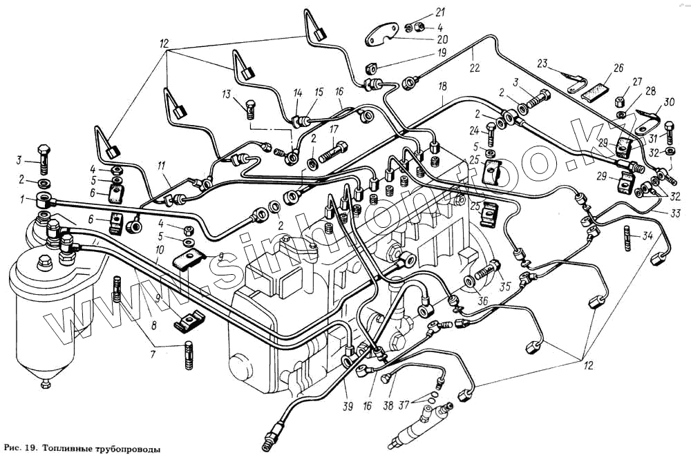 Каталог запасных частей к технике: ЯМЗ-8423.10. Топливные трубопроводы