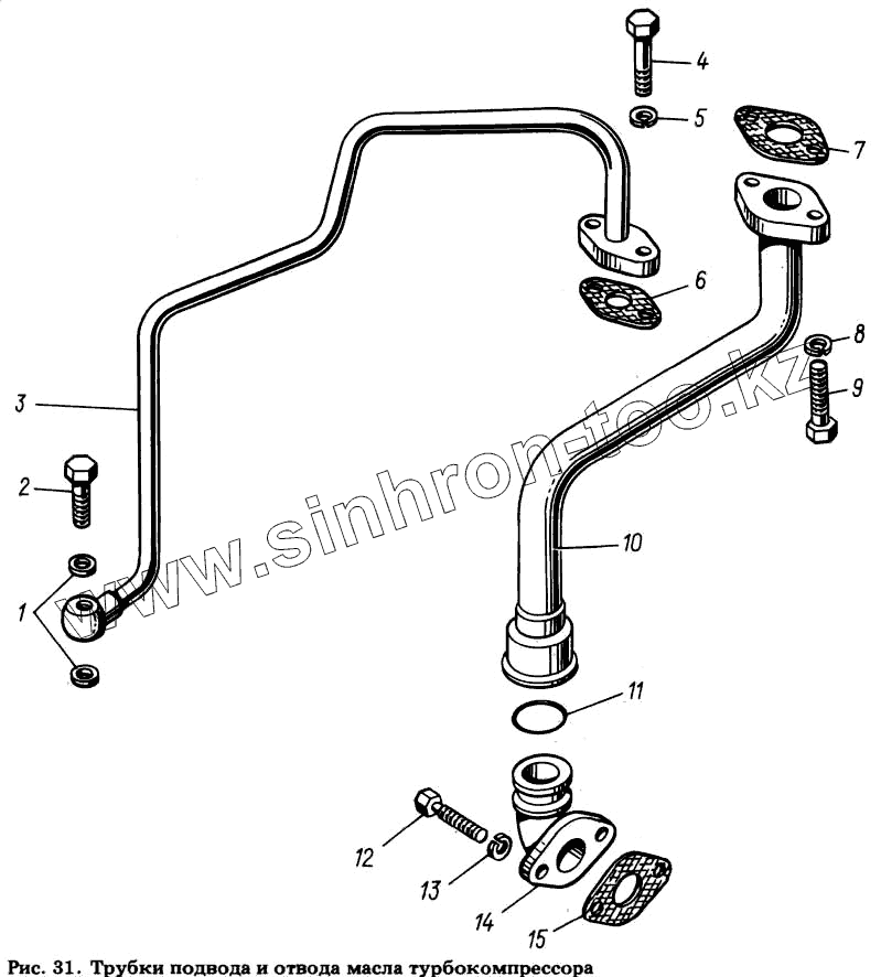 Каталог запасных частей к технике: ЯМЗ-8423.10. Трубка подвода и отвода масла турбокомпрессора