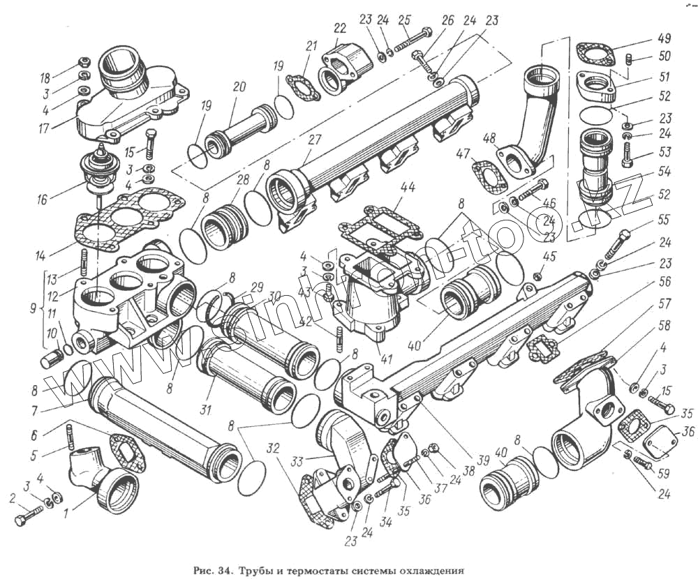 Каталог запасных частей к технике: ЯМЗ-8423.10. Трубы и термостаты системы охлаждения