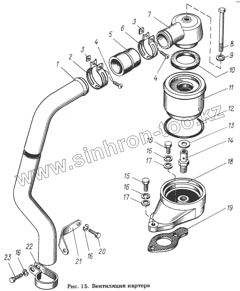 Каталог запасных частей к технике: ЯМЗ-8423.10. Вентиляция картера