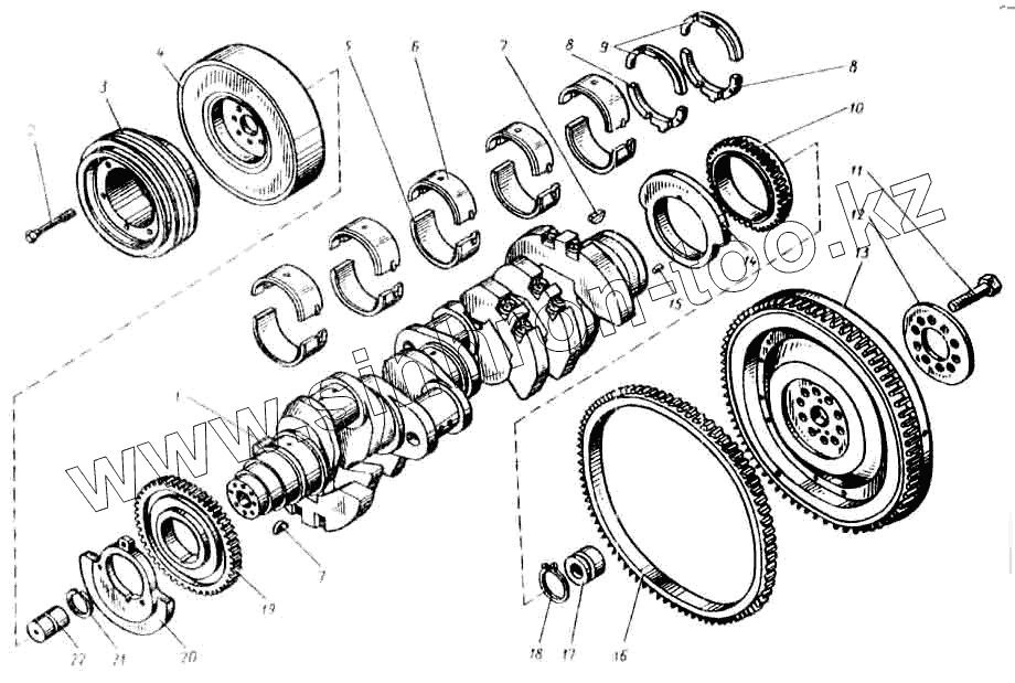 Каталог запасных частей к технике: ЯМЗ-8423. Коленчатый вал и маховик
