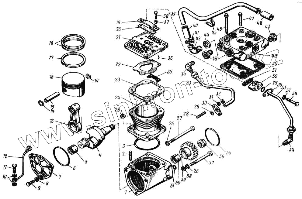 Каталог запасных частей к технике: ЯМЗ-8423. Компрессор 306-Ш в сборе