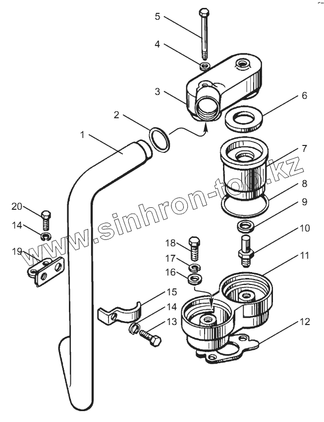Трубы и термостаты системы охлаждения двигателей ЯМЗ-8502.10, ЯМЗ-8502.10-08, ЯМЗ-8503.10