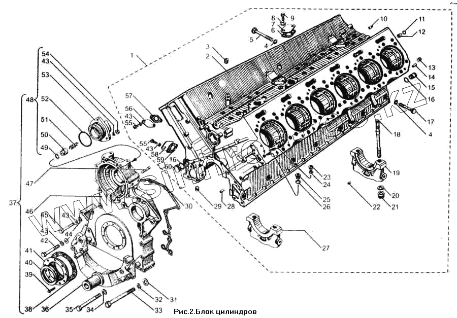Каталог запасных частей к технике: ЯМЗ-850. Блок цилиндров