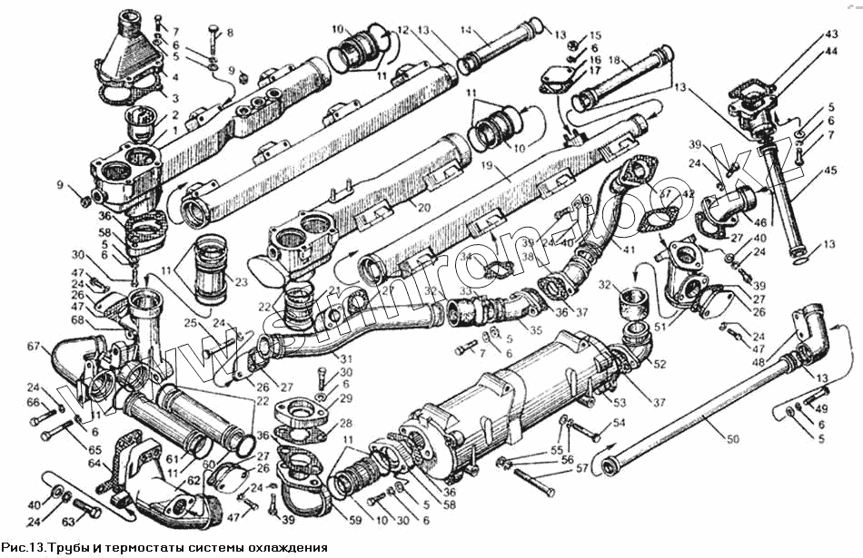 Каталог запасных частей к технике: ЯМЗ-850. Трубы и термостаты системы охлаждения