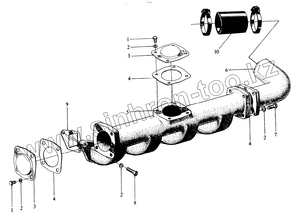 Каталог запасных частей к технике: YTO 4108. Intake Tube Assy (II)