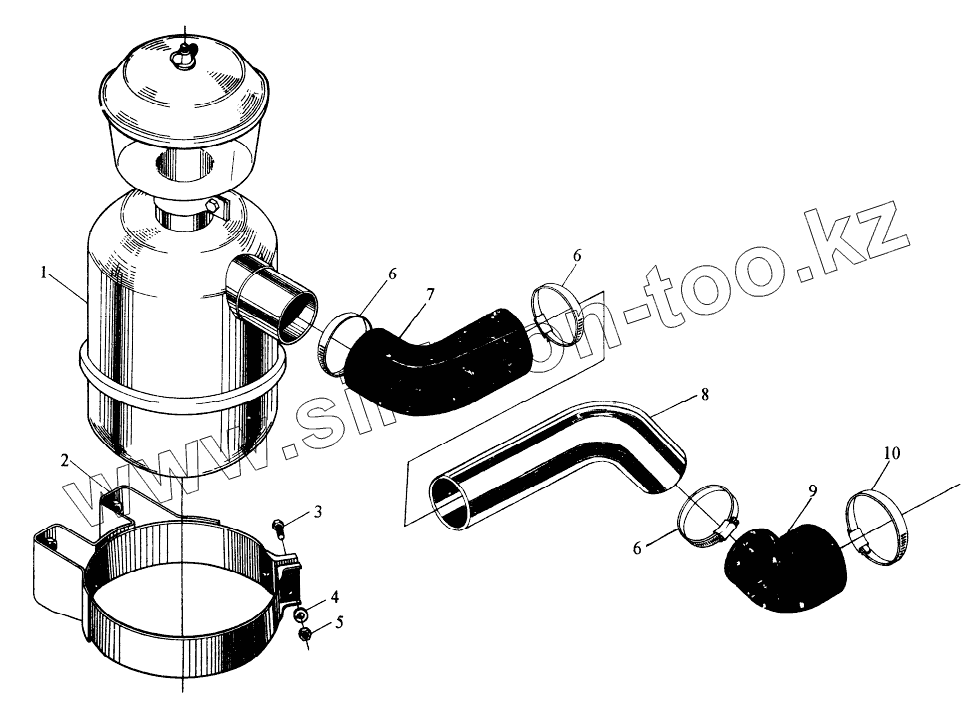 Каталог запасных частей к технике: YTO 4110. Air Cleaner Installation Assy (I)