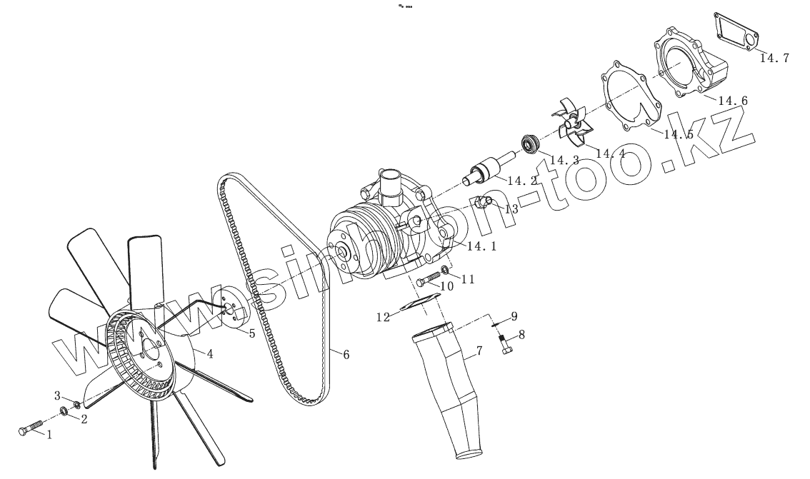 Каталог запасных частей к технике: YTO LR4M5-T73EXA-U2. Water Pump and Fan Assy