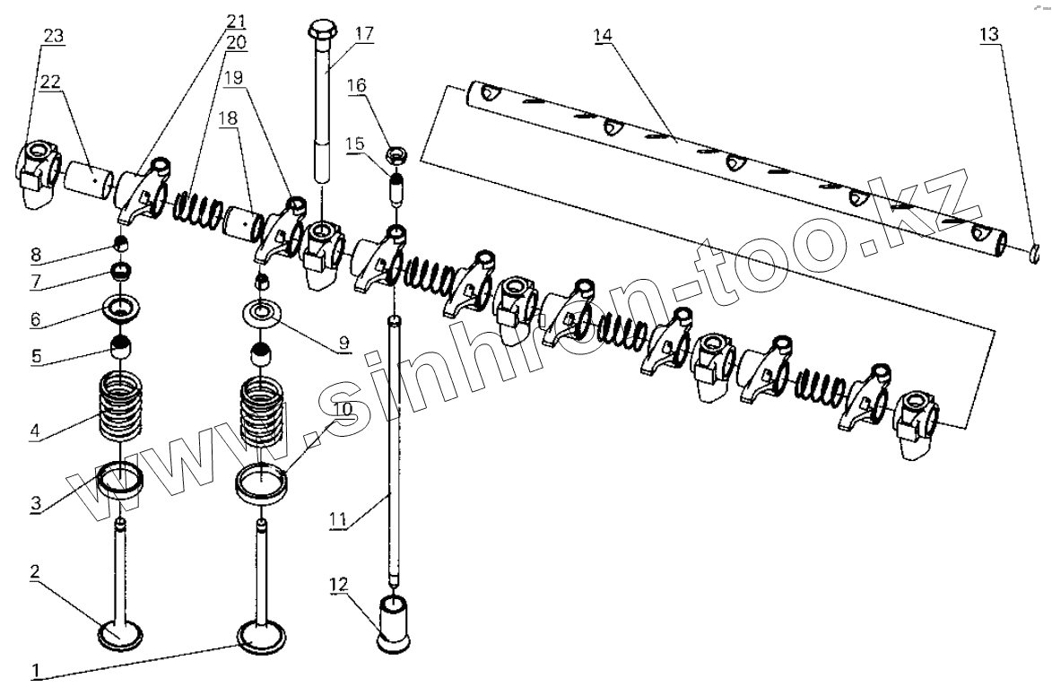 Каталог запасных частей к технике: Yuchai YC4112ZQ (ZLQ). B30-1007000 Valve train
