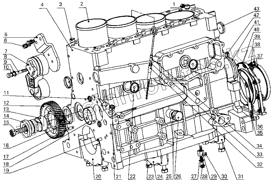 Каталог запасных частей к технике: Yuchai YC4112ZQ (ZLQ). G0100-1002000 Cylinder block assembly