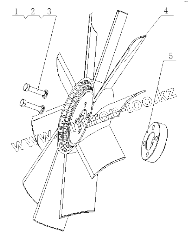 Каталог запасных частей к технике: Yuchai YC4A115Z-T20. B7A00-1308000/05 Fan Assembly