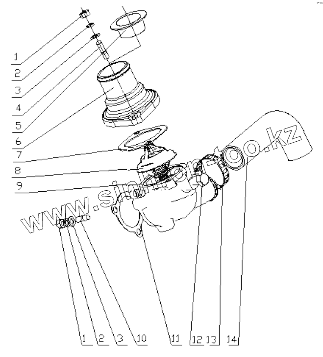 Каталог запасных частей к технике: Yuchai YC4A115Z-T20. B8860-1306000/09 Thermostat Assembly