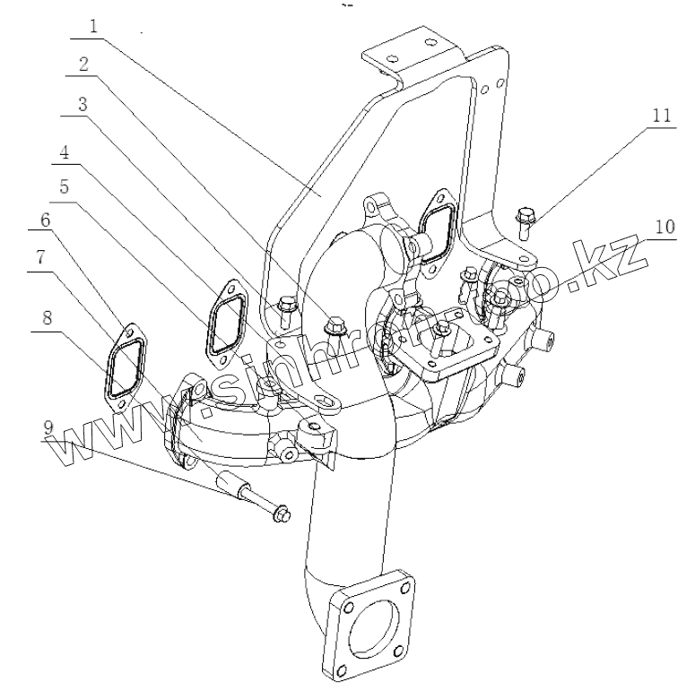 Каталог запасных частей к технике: Yuchai YC4B105Z-T20. 10B7NT0-1008200/03 Exhaust Pipe Parts