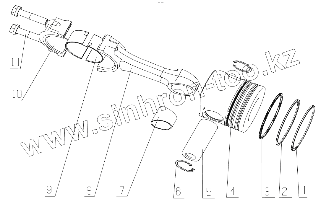 Каталог запасных частей к технике: Yuchai YC4B105Z-T20. 5B8E00-1004000/04 Piston Connecting Rod Assembly