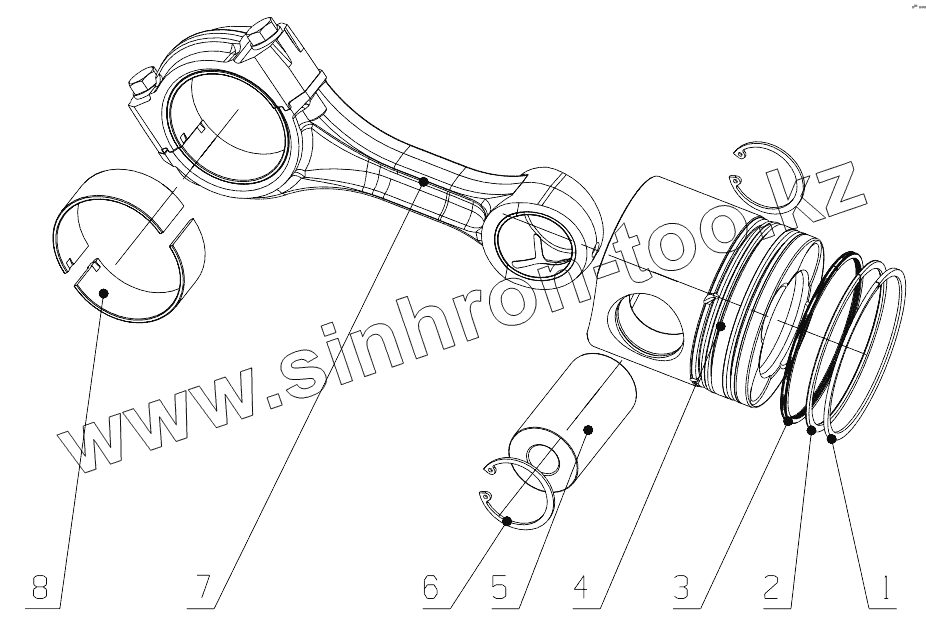 Каталог запасных частей к технике: Yuchai YC4D120-20. D0200-1004000 Piston and Connecting Rod Assembly