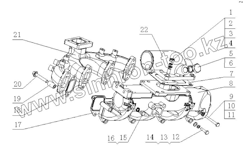 Каталог запасных частей к технике: Yuchai YC4D120-20. D08G2-1008000 Intake and exhaust pipe assembly