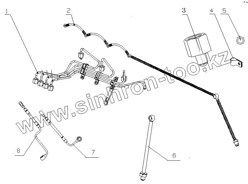 Каталог запасных частей к технике: Yuchai YC4D120-20 (D1007). D0899-1104000 Топливопровод в сборе