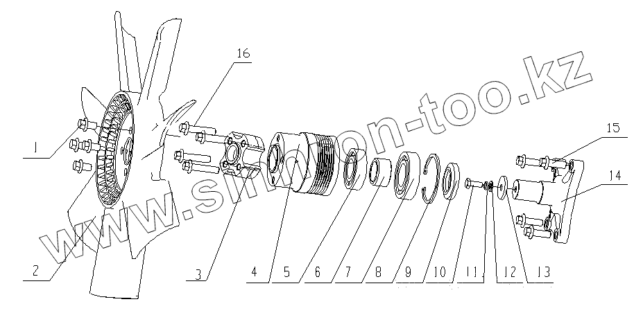 Каталог запасных частей к технике: Yuchai YC4D120-20 (D1007). D12F5-1308000 Вентилятор в сборе