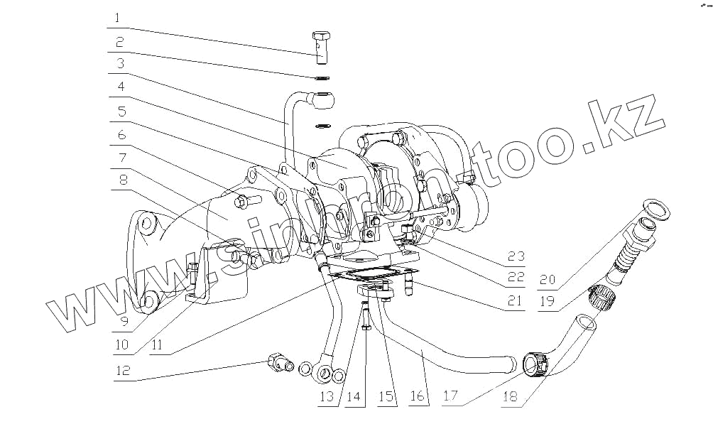 Каталог запасных частей к технике: Yuchai YC4D120-30 (D22J1). D22J1-1118000/02 Турбонагнетатель в сборе