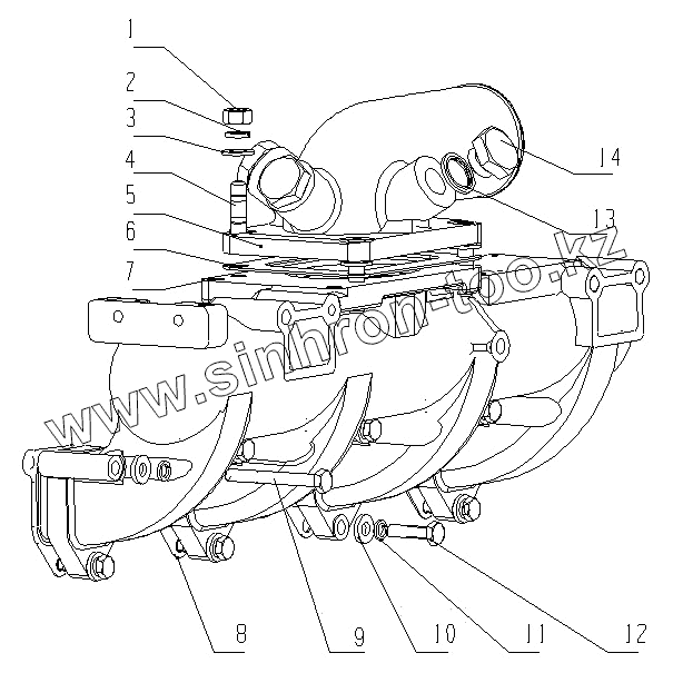 Каталог запасных частей к технике: Yuchai YC4D130-20 (D08FL). D0898-1008100 Детали впускного коллектора