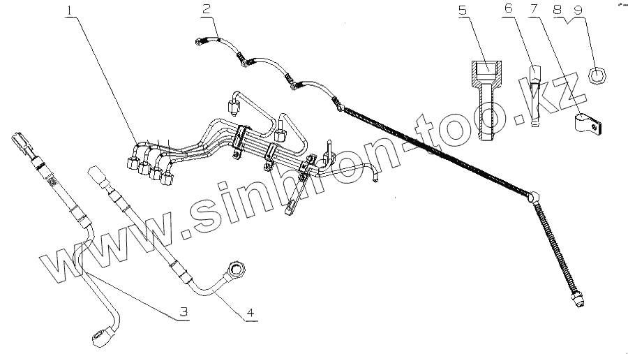Каталог запасных частей к технике: Yuchai YC4D130-20 (D08FL). D08FA-1104000 Топливопровод в сборе