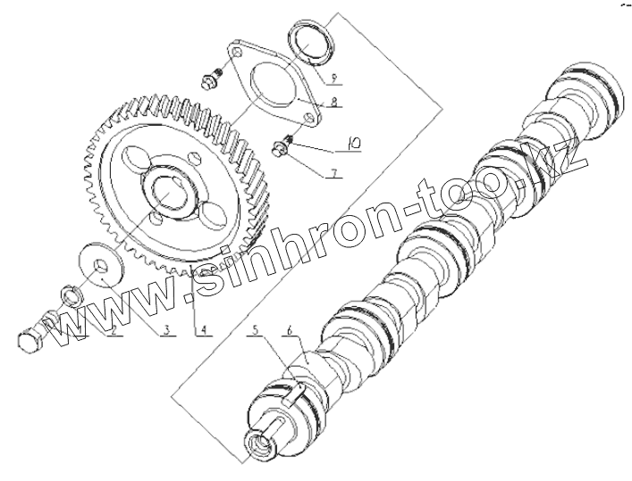 Каталог запасных частей к технике: Yuchai YC4D140N-50. D4300-1006000 Camshaft Assembly